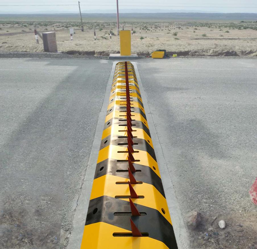 預(yù)埋式破胎器的工作原理基于其隱蔽的位置和快速響應(yīng)機(jī)制。一旦設(shè)備被激活或觸發(fā),它的尖銳部件會迅速伸出,刺穿接觸的車輛輪胎,導(dǎo)致輪胎失壓或爆胎,從而控制或限制車輛的行駛。